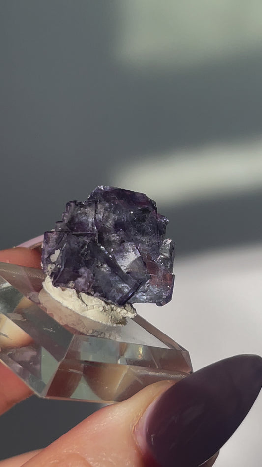 Yaogangxian Purple Cubic Fluorite with Double Quartz Points - 111 grams