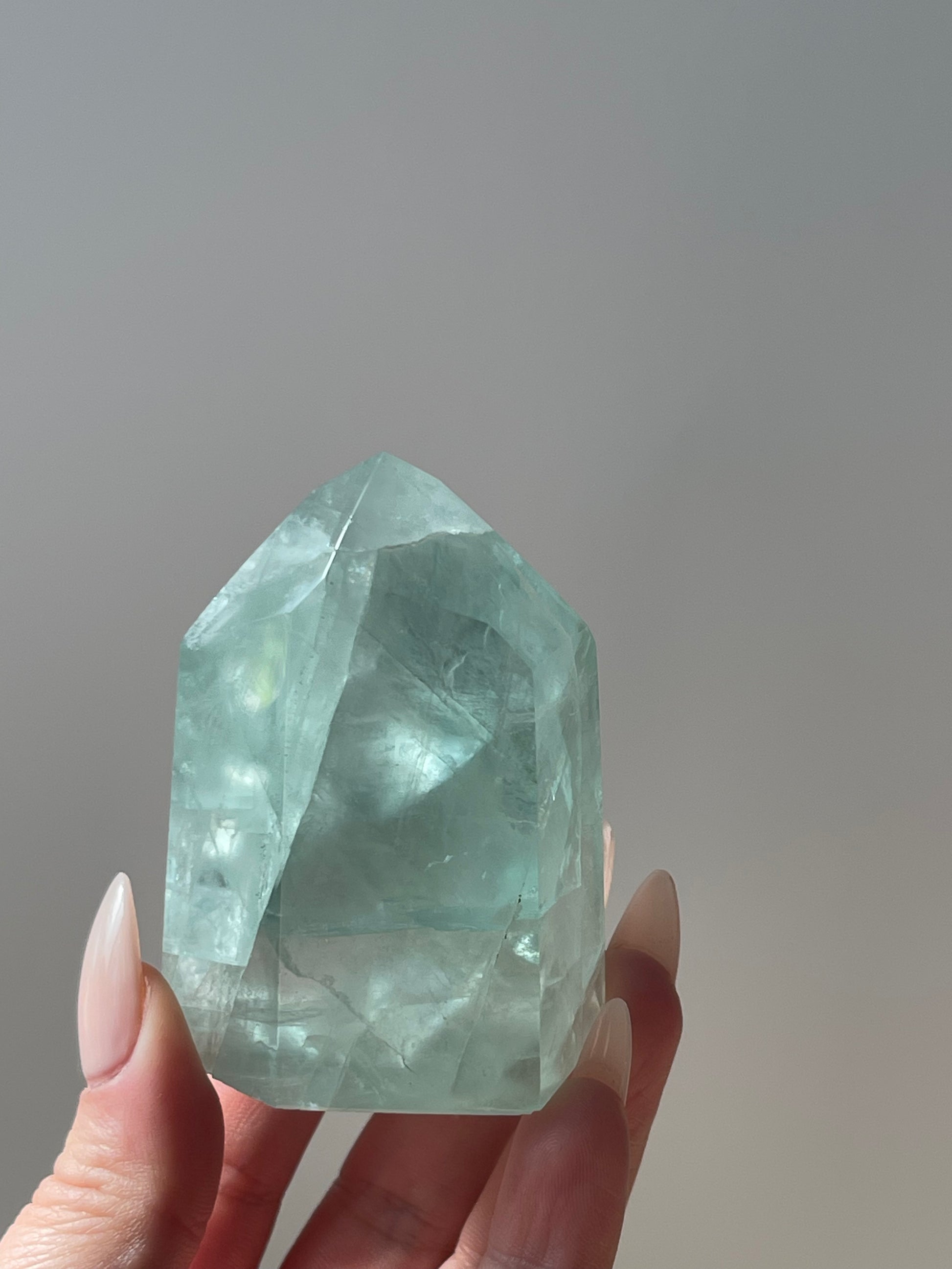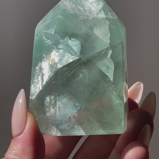 Mint green Fluorite chunky tower with high clarity and rainbows