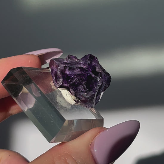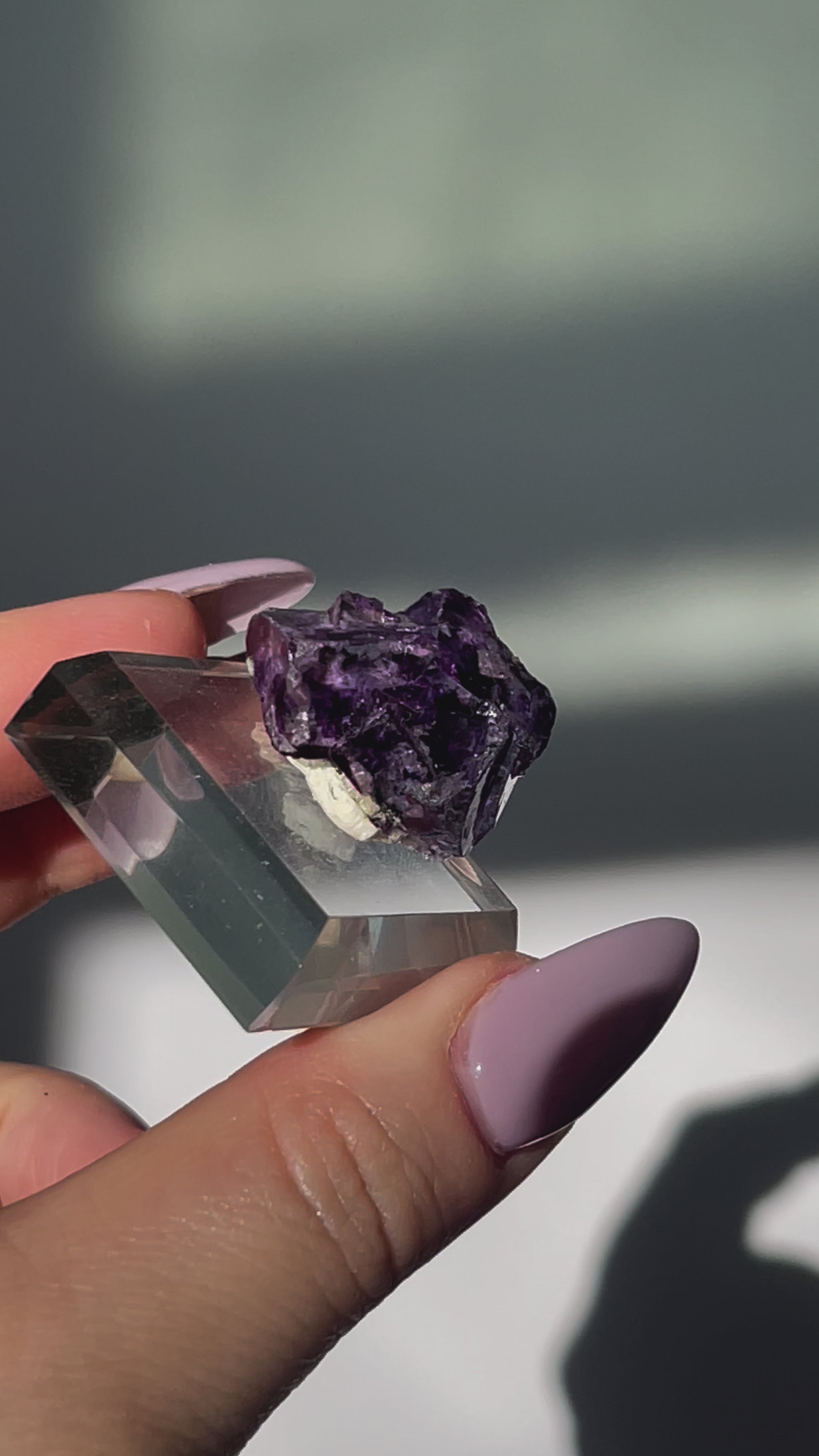 Yagangxian (YGX) Deep Purple Fluorite with Calcite along the base - high clarity
