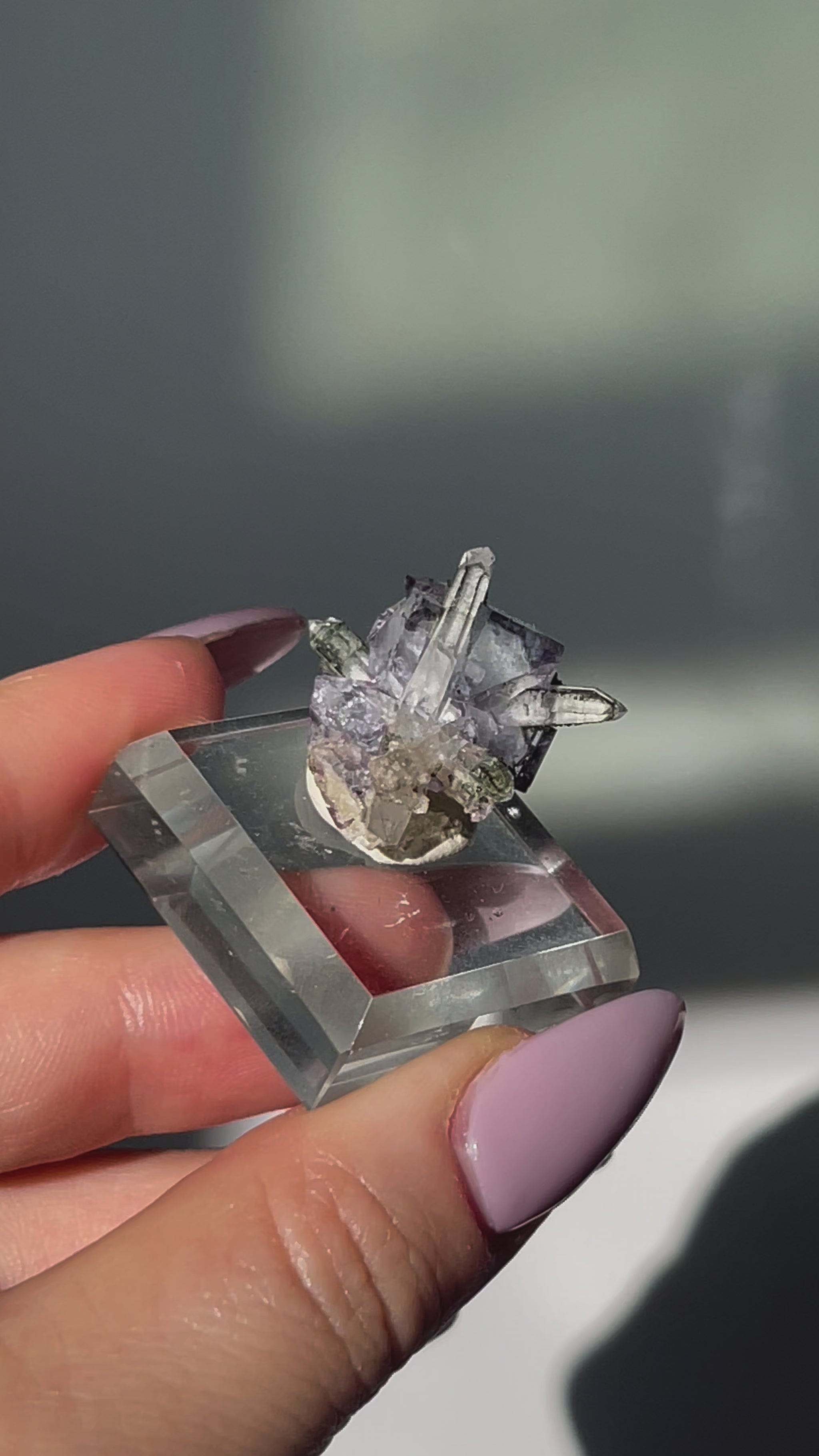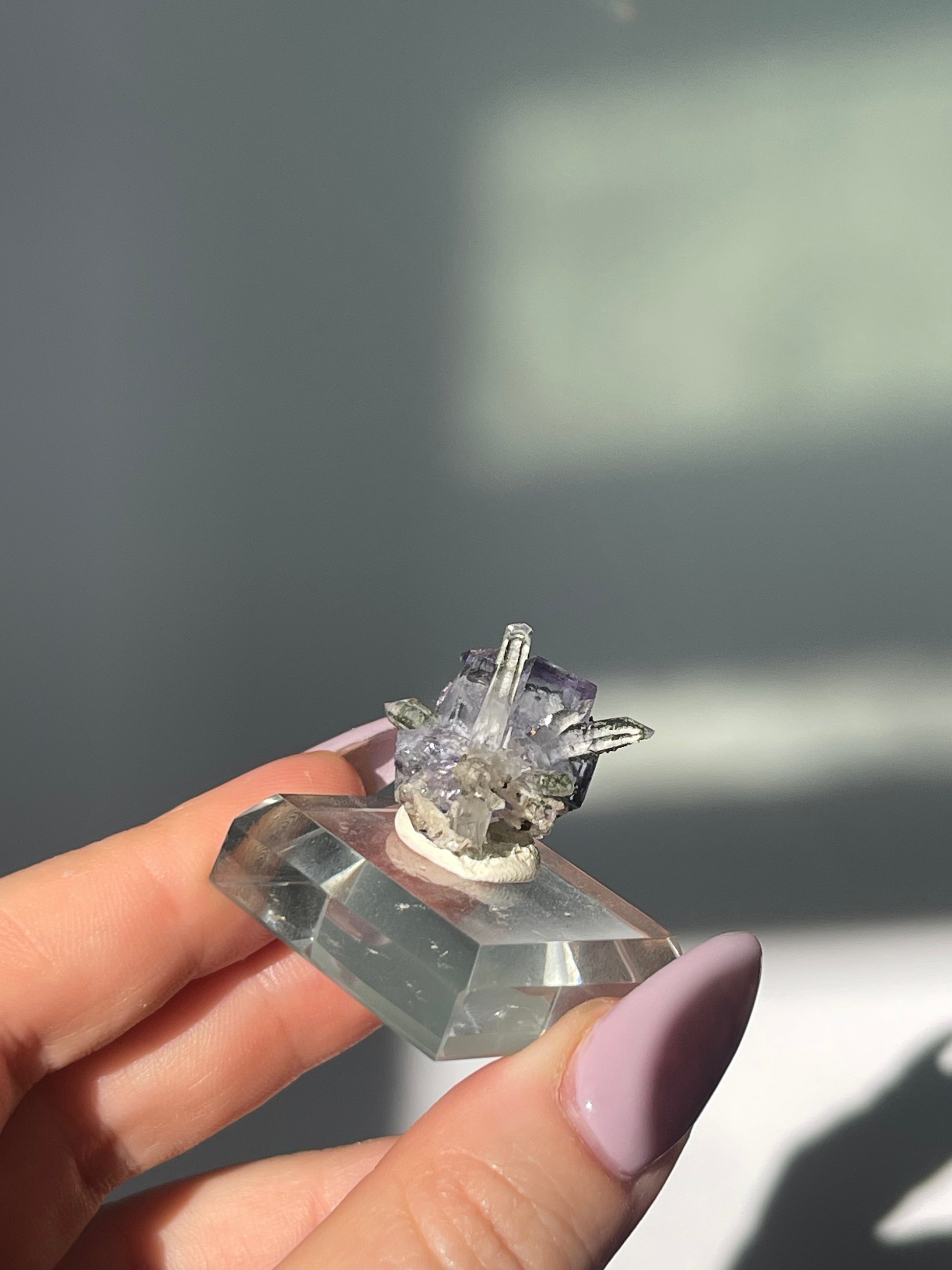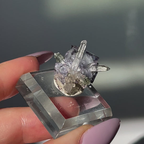 Yagangxian (YGX) Light Purple Fluorite with Quartz point, Epidote and Mica - high clarity